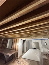 This Mattituck, NY project involved interior demolition following a water loss that impacted the home’s kitchen and lower-level living areas. After identifying the areas affected by moisture intrusion, our team carefully removed sections of the ceiling and flooring to expose the structural framing and subfloor beneath. Opening these assemblies allowed restoration crews to properly dry the space and inspect critical components such as joists, electrical wiring, and insulation before reconstruction began.