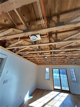 This Long Beach, NY project involved interior demolition following significant water damage that impacted ceilings and surrounding structural components. Our team carefully removed compromised drywall and ceiling materials to fully expose the framing, plumbing, and electrical systems above. By opening the affected areas, we allowed proper drying, inspection, and remediation to take place—preventing hidden moisture from causing future structural or mold-related issues. Every step was performed in a controlled manner to protect the newly installed flooring and unaffected walls below.